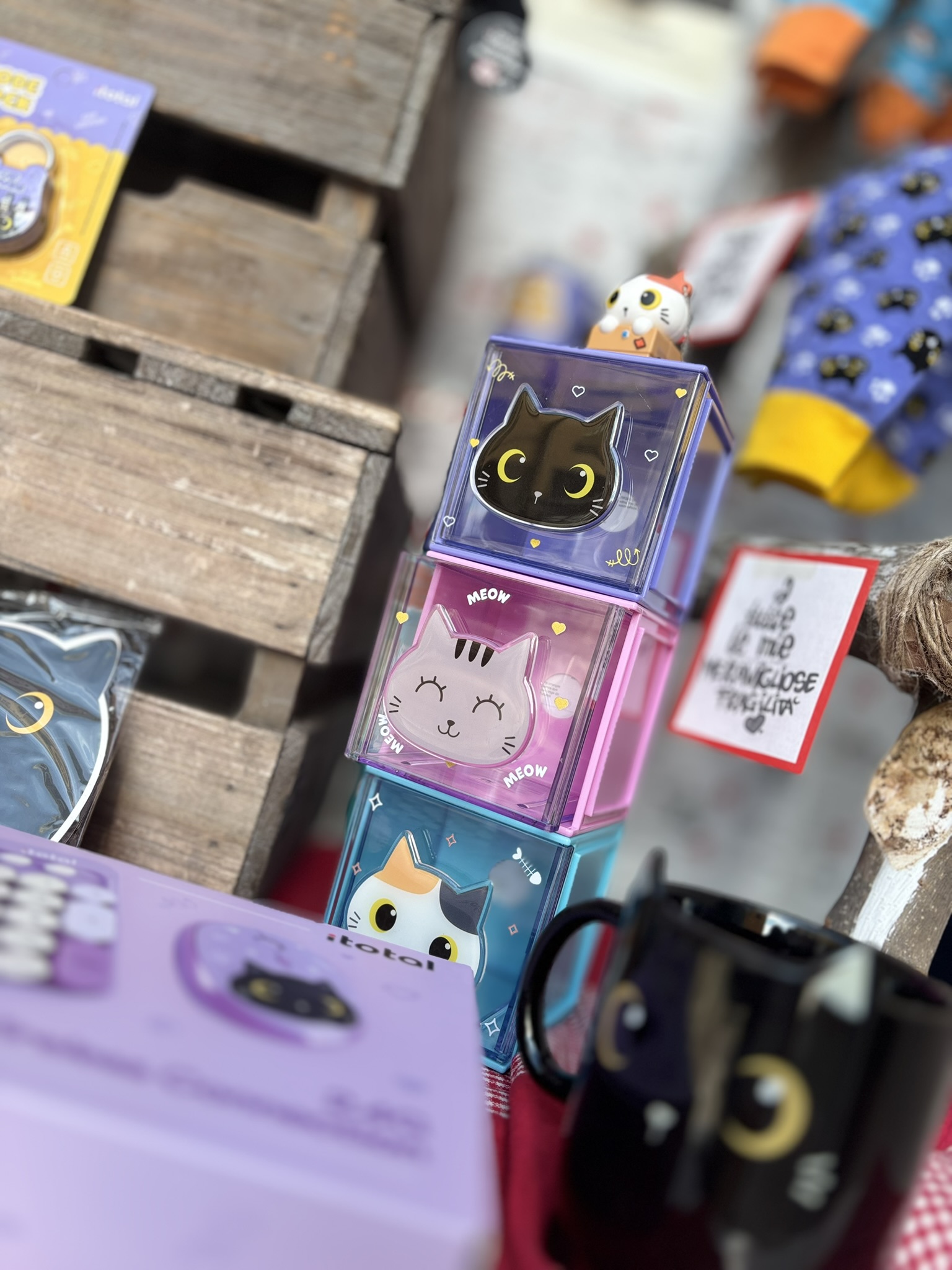 Organizer da scrivania a forma di cubo della collezione Cat. Dimensioni: 9x9x9,5cm. Materiali: ABS, AS, acrilico.