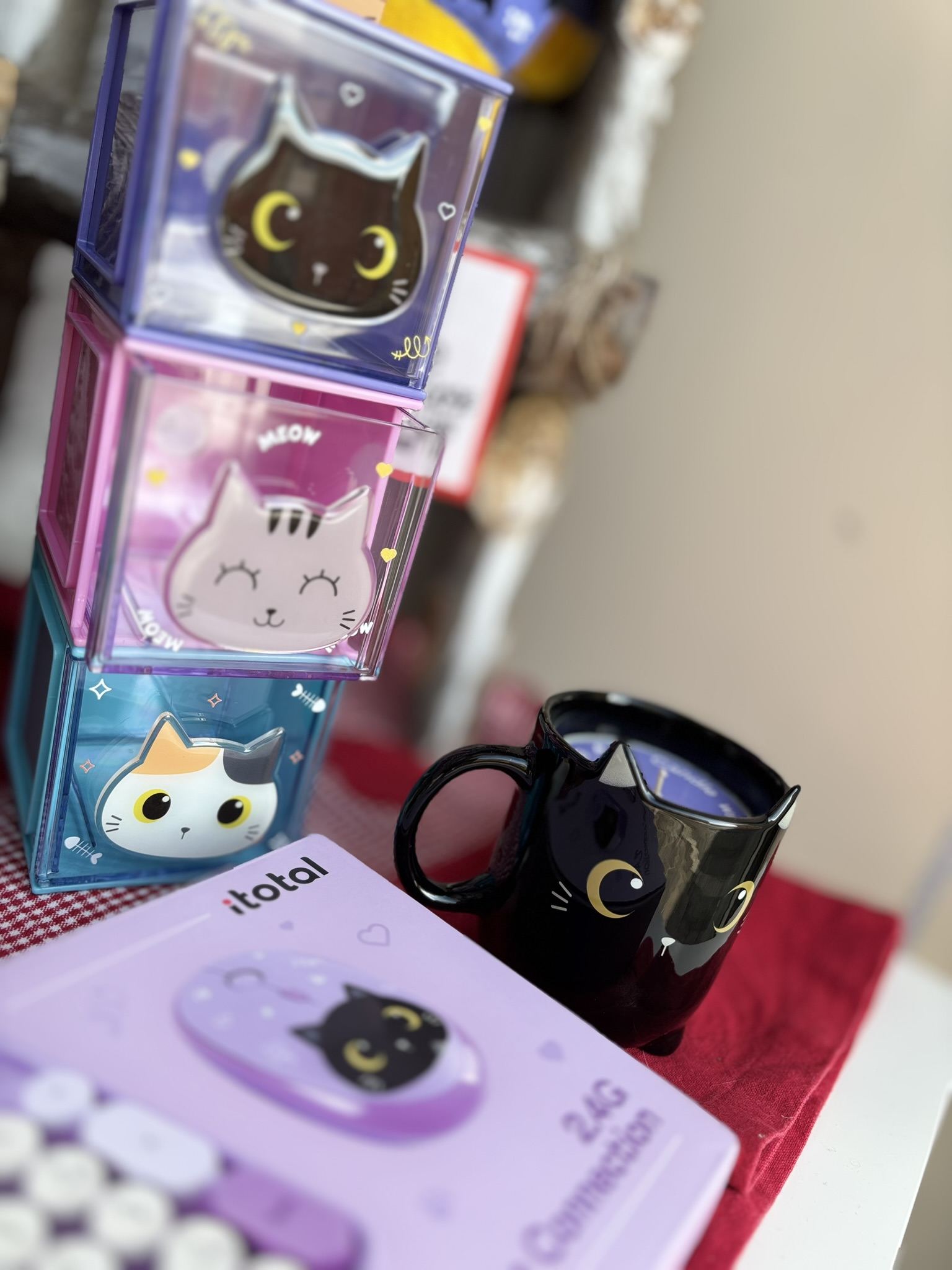 Organizer da scrivania a forma di cubo della collezione Cat. Dimensioni: 9x9x9,5cm. Materiali: ABS, AS, acrilico.