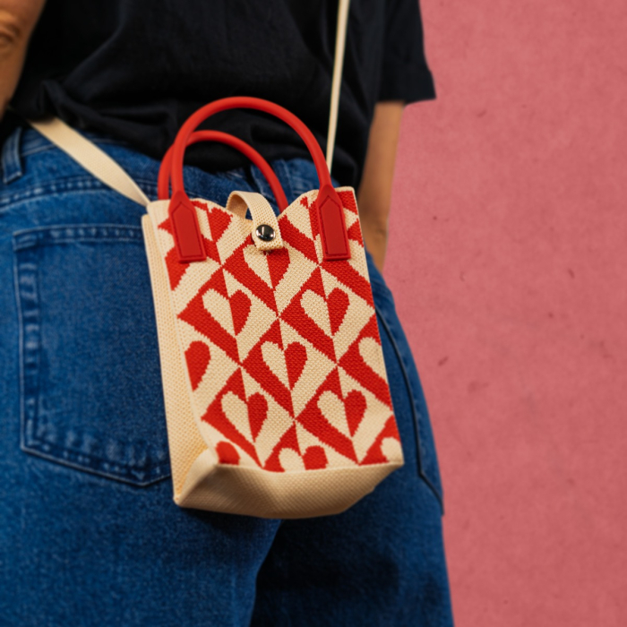 Portacellulare lavorato a maglia. Dotato di comoda tracolla, sarà l’accessorio indispensabile per le tue serate estive. Grazie ai suoi pattern e colori originali, completerà il tuo outfit rendendolo unico. Materiale: poliestere.