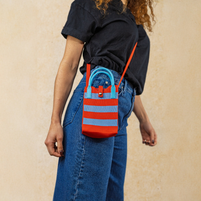 Portacellulare lavorato a maglia. Dotato di comoda tracolla, sarà l’accessorio indispensabile per le tue serate estive.