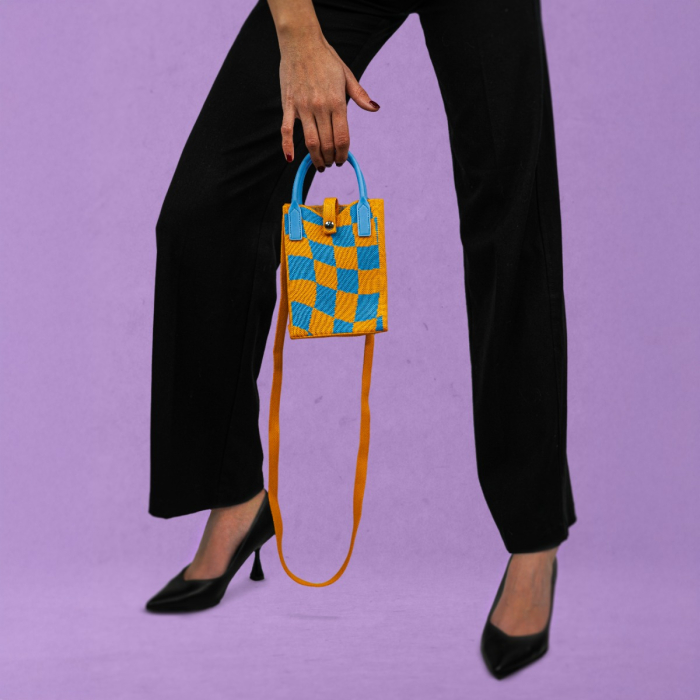 Portacellulare lavorato a maglia. Dotato di comoda tracolla, sarà l’accessorio indispensabile per le tue serate estive. Grazie ai suoi pattern e colori originali, completerà il tuo outfit rendendolo unico. Materiale: poliestere.