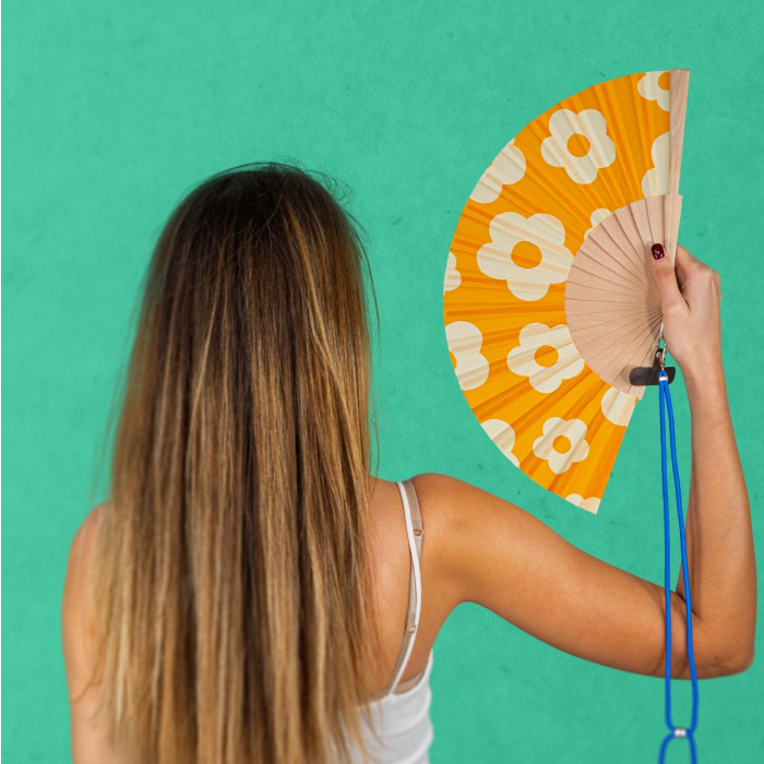 Ventaglio con laccio a tracolla. Comodo e pratico durante le calde giornate estive, dai colori e i pattern originali renderà ogni outfit originale. Inclusa nella confezione linguetta per cellulare.