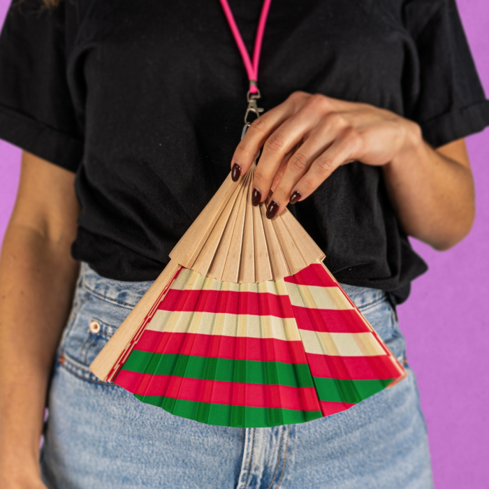 Ventaglio con laccio a tracolla. Comodo e pratico durante le calde giornate estive, dai colori e i pattern originali