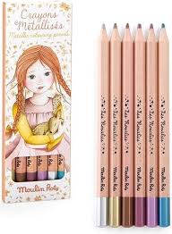 6 matite colorate metallizzate Les Rosalies, con mina morbida per illuminare i tuoi disegni e colorazioni. Per accentuare l'effetto metallico, optate per carta scura.