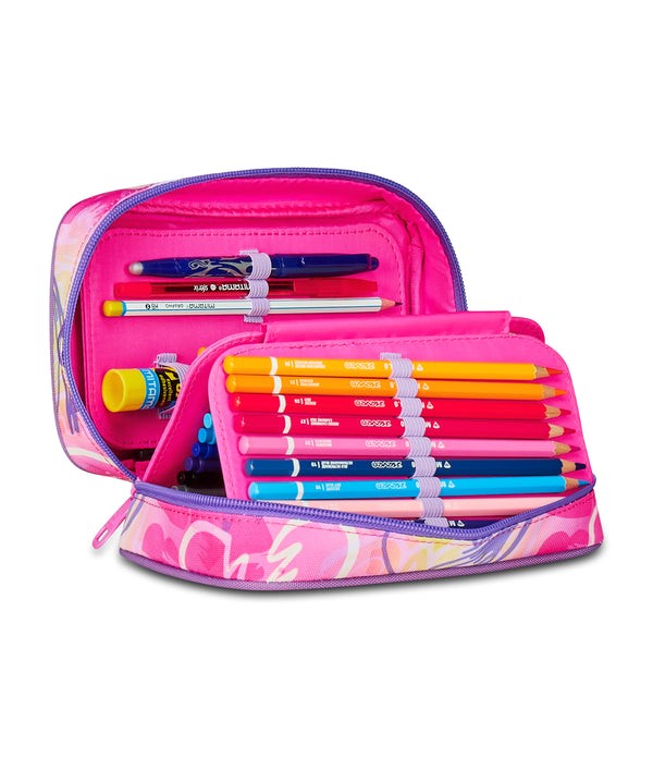 Ciao! Sono l’astuccio Speed Case SJ Gang! Dotato di una comoda apertura tramite un’unica zip e di tutto il materiale necessario per esprimere al meglio la tua fantasia, puoi montarmi e smontarmi a tuo piacere. Infatti, all’interno ho plance removibili con elastici porta penne e matite, che puoi rimuovere del tutto. Così puoi riempirmi come preferisci. Comodo, pratico, versatile e coloratissimo, non ti resta che abbinarmi a uno zaino o a un trolley SJ Gang!